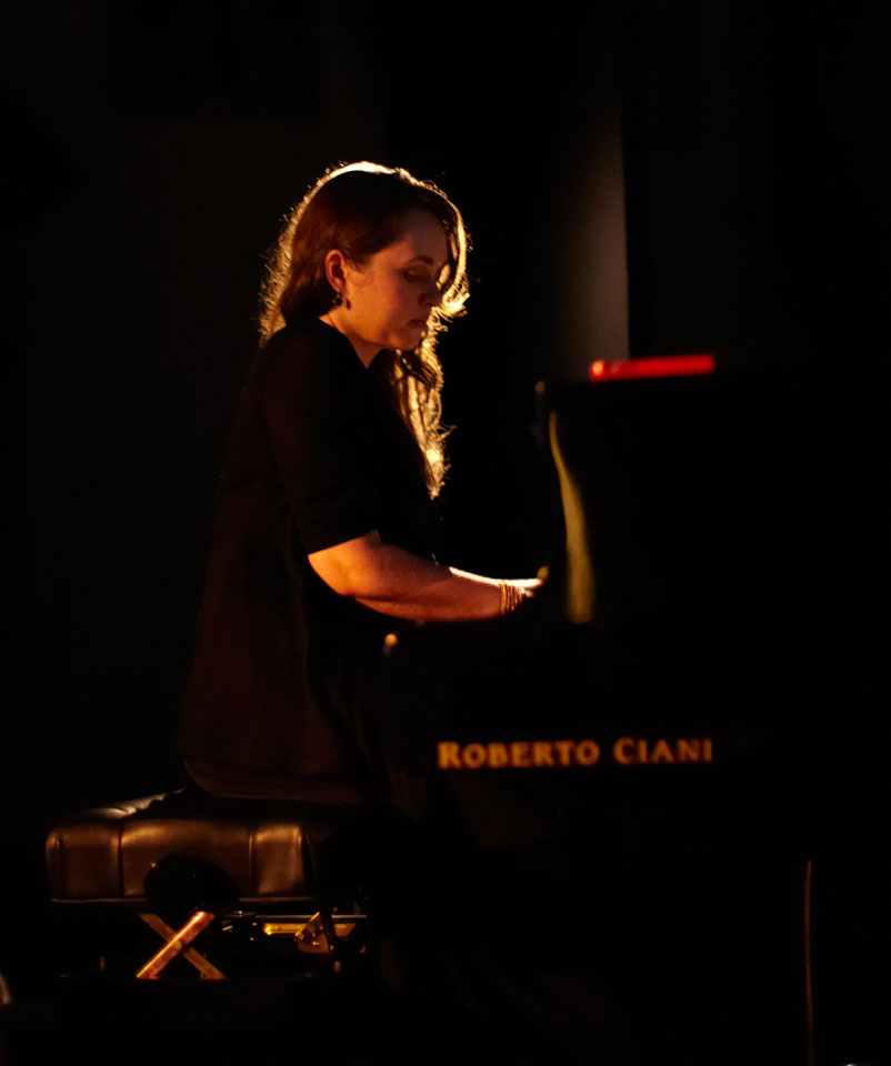 performing live on stage.