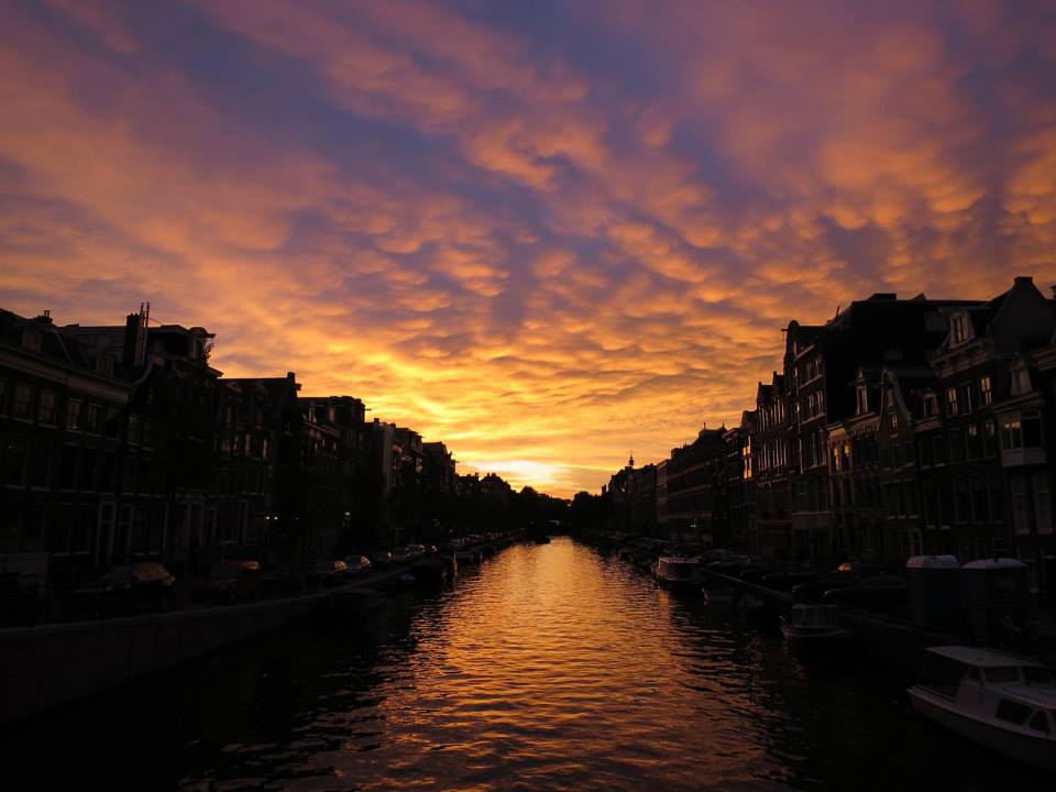 Sunset over the Amsterdam canal