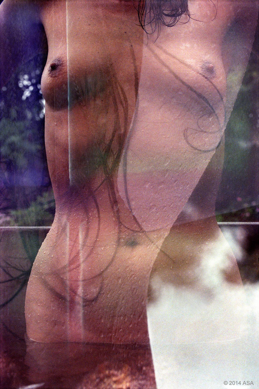 What is perhaps most striking about Adi Da's photographs is their gnostic quality — the intricate movement of light and shadow that gives them their expressive depth and profound intimacy. It is more than a matter of standard chiaroscuro. Adi Da is not simply employing the evocative power of light and shadow, but bringing out their emblematic character. Interweaving them — and in numerous works skeins of light (“the fire of the sun”) play over and within shadowy if transparent water (“the water of life”) — Adi Da suggests the union of opposites that is the core of mystical experience. Ecstatic experience of their unity brings with it a sense of the immeasurable. Adi Da places us in a garden of paradise — as the lush vegetation that appears in many photographs suggests — and the female body may be its ripest, most perfect fruit, but it is a paradise not just because of her presence but because we experience it as illimitable. It is space that is no longer divided against itself because its light and dark are inseparable. One extreme can no longer take the measure of the other extreme — afford a kind of detached perspective on it, as it were — because the extremes have been integrated. The physicist David Bohm describes mystical experience as an attempt “to reach the immeasurable, that is, a state of mind in which [one] ceases to sense a separation between [oneself] and the whole of reality.” It is a state of mind which has no measure — a state of mind beyond the everyday measurable state of mind. Adi Da conveys this transcendental state of mind by fusing elemental light, shadow, water, and body in a dimensionless space.