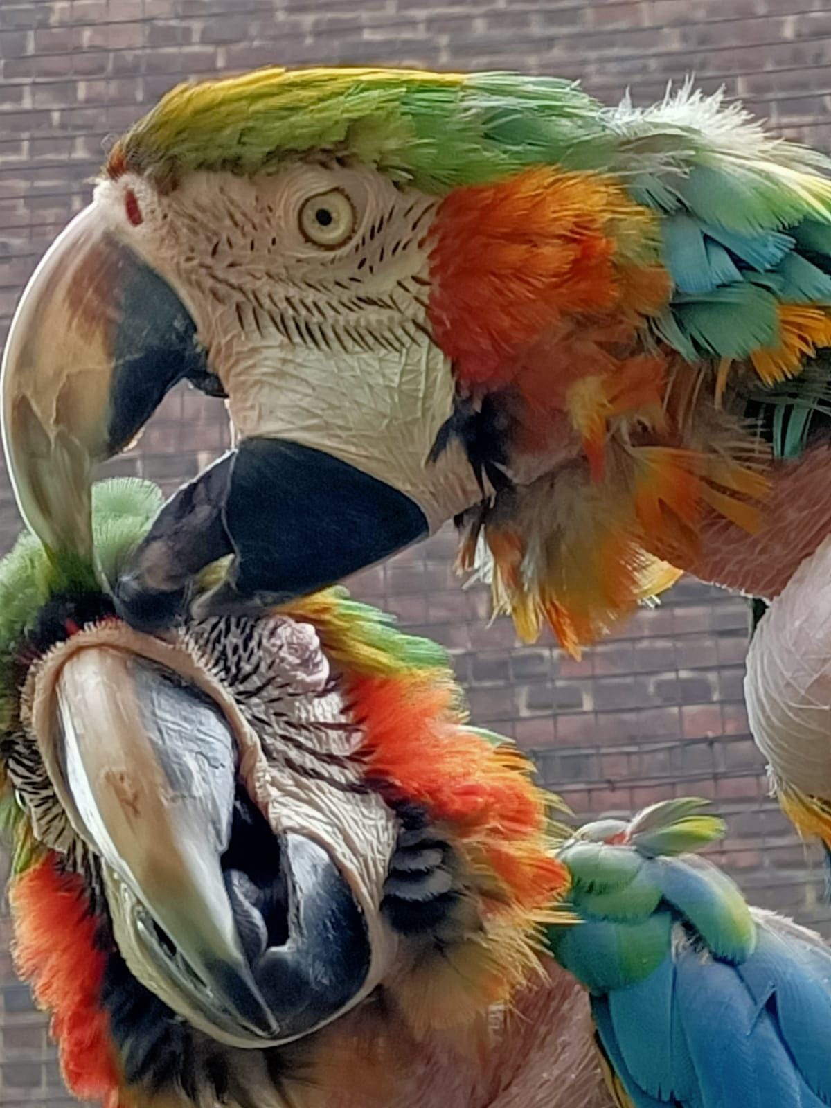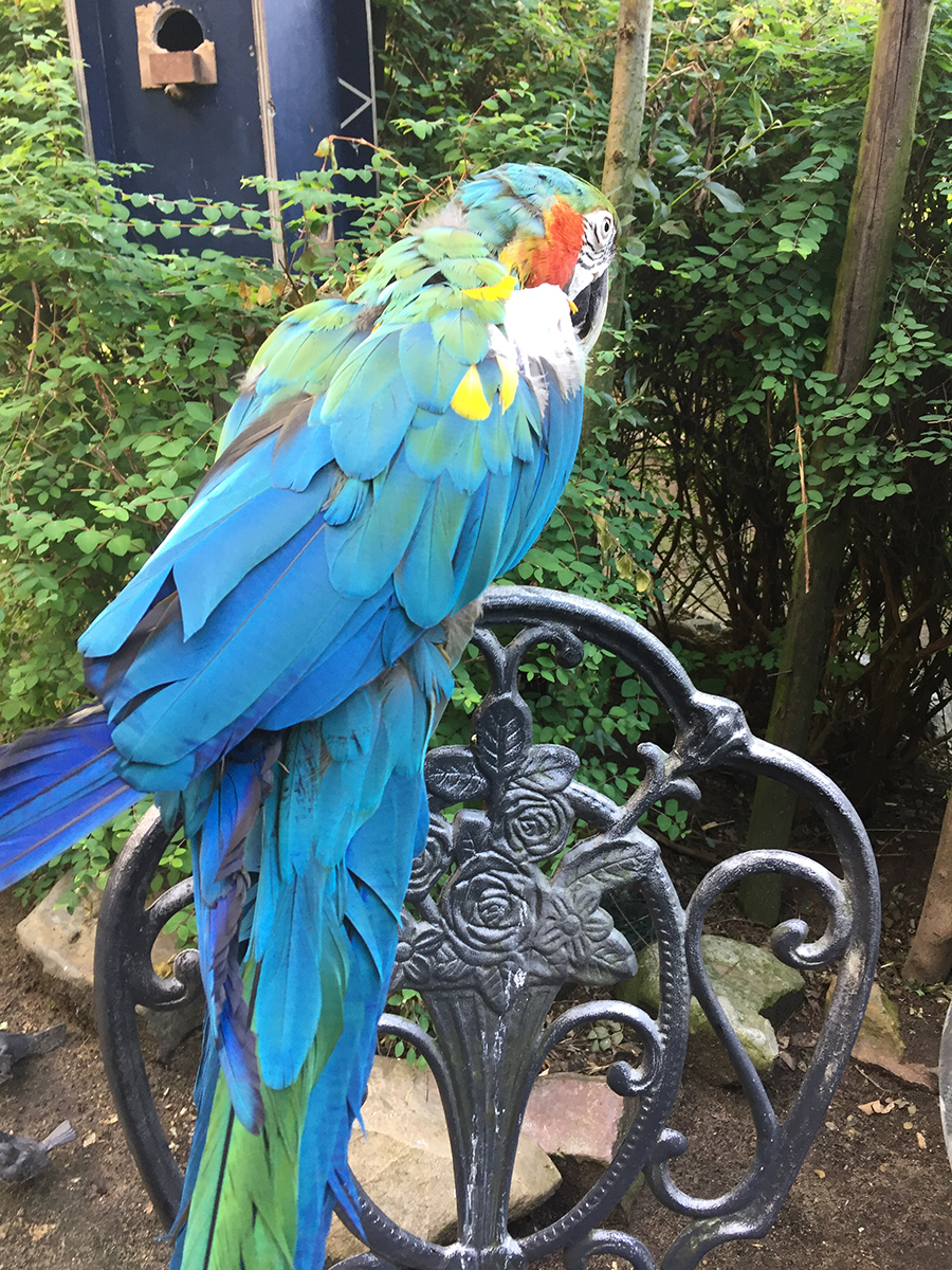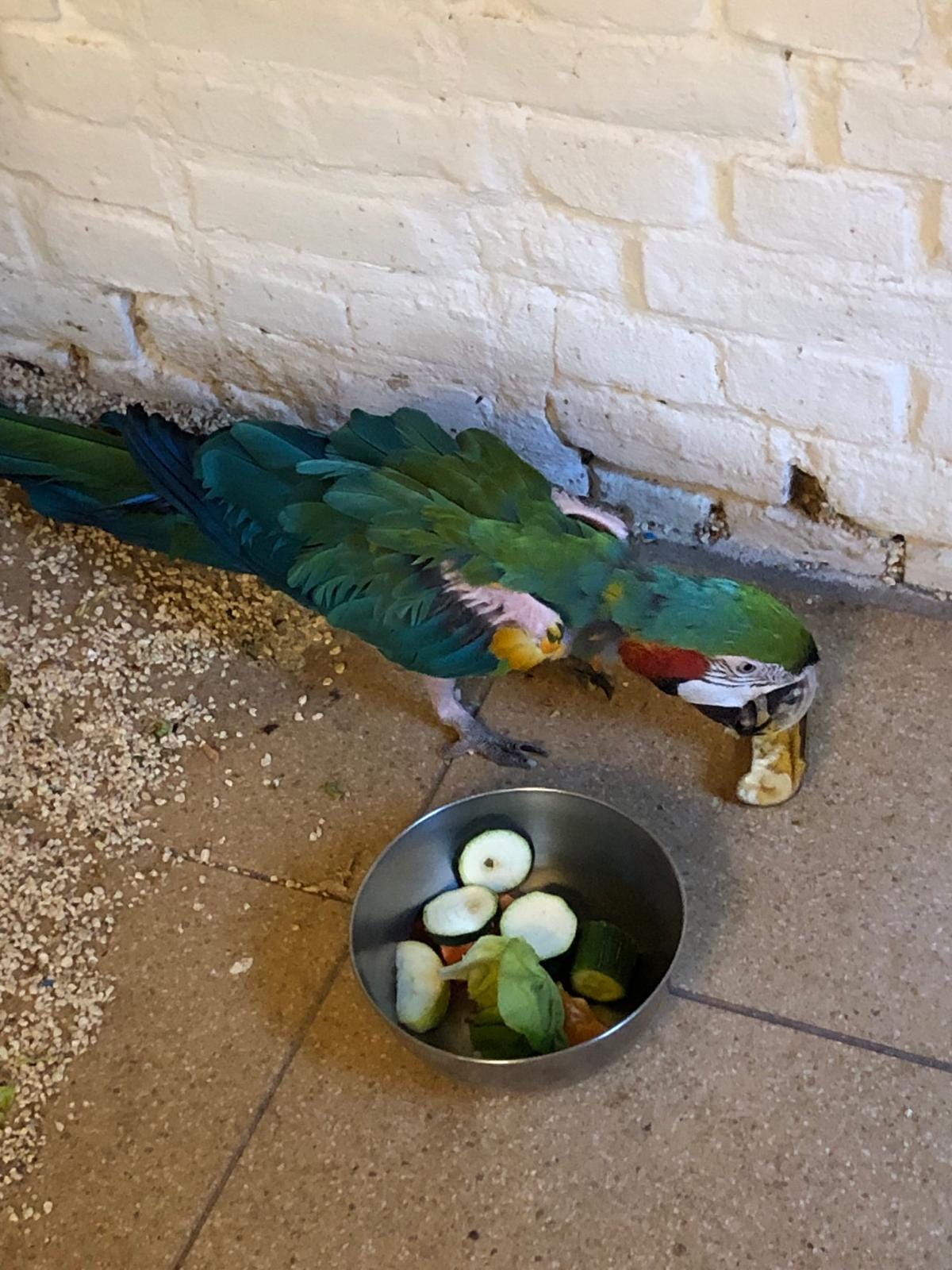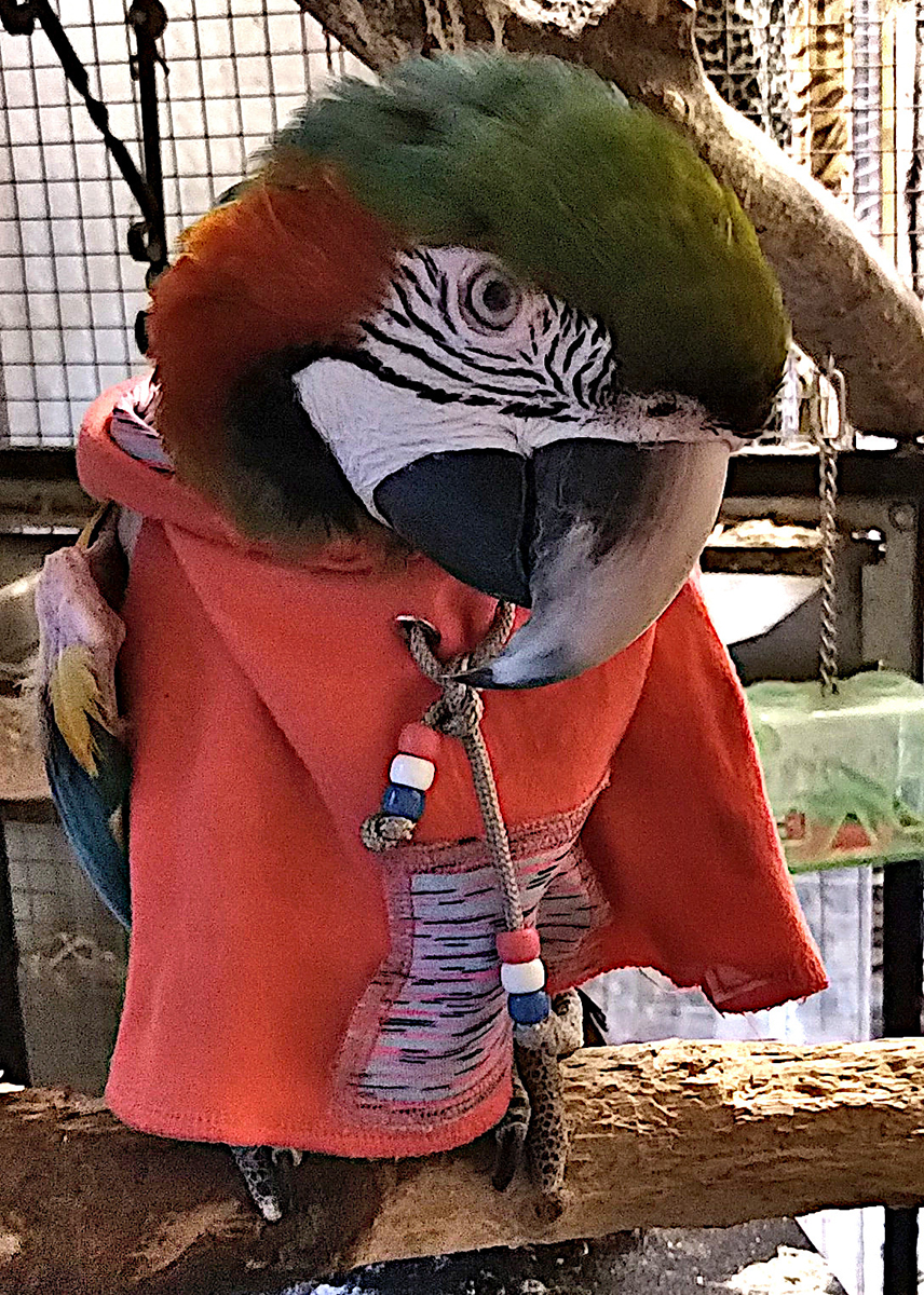 Dorkus is an orange, blue green Macaw and lives in the bird aviary with the other birds and her macaw friend Tank. She was born in 1996 and the same year Adi Da Samraj purchased her. He spent quite a bit of time with her in Maria Hoop, Netherlands. He even named her Dorkus, and she has an enormous response to Adi Da's Presence. She is a very strong bird with a strong personality. She knows what she wants and likes to be naughty, and push the boundaries from time to time.