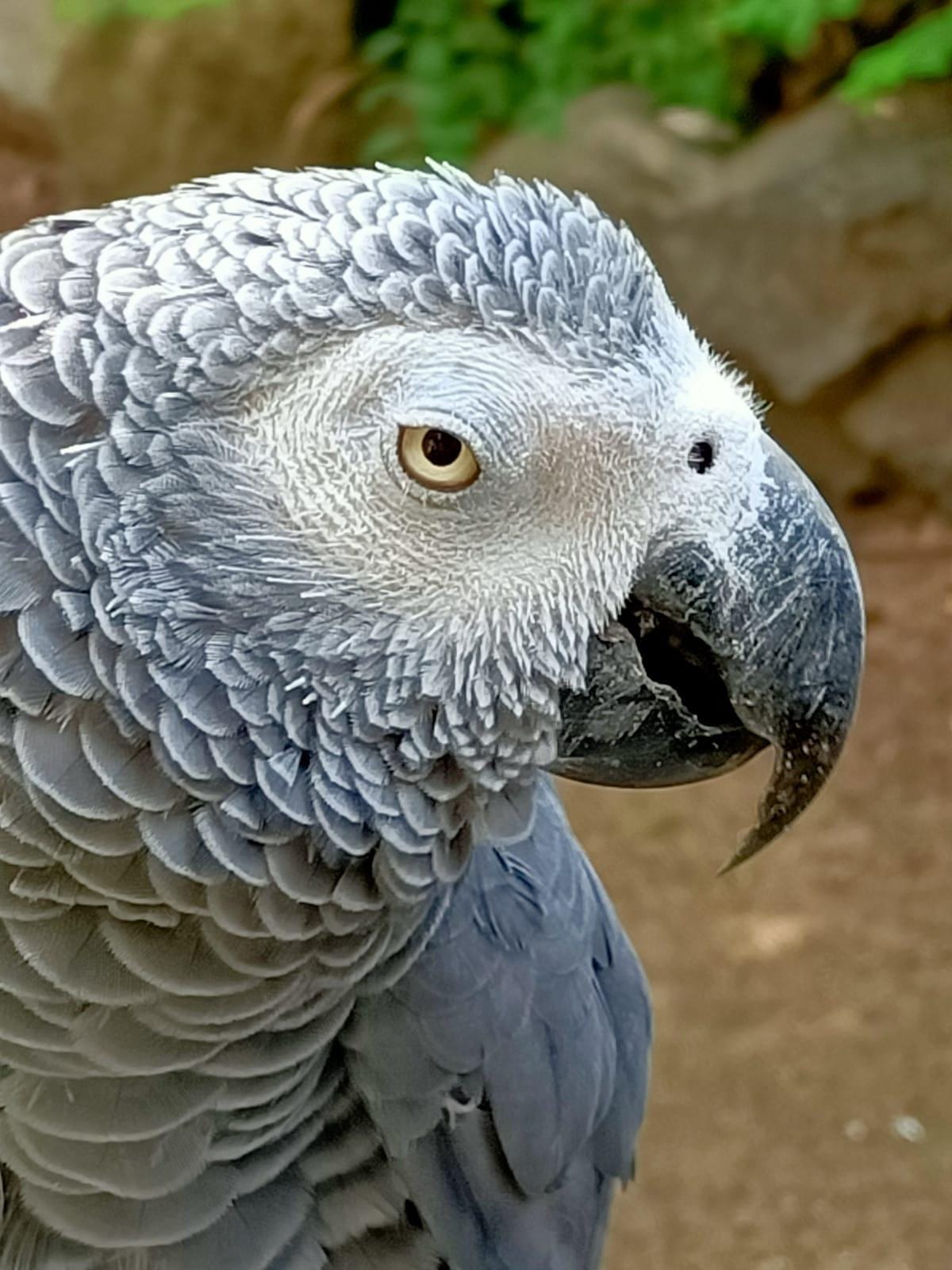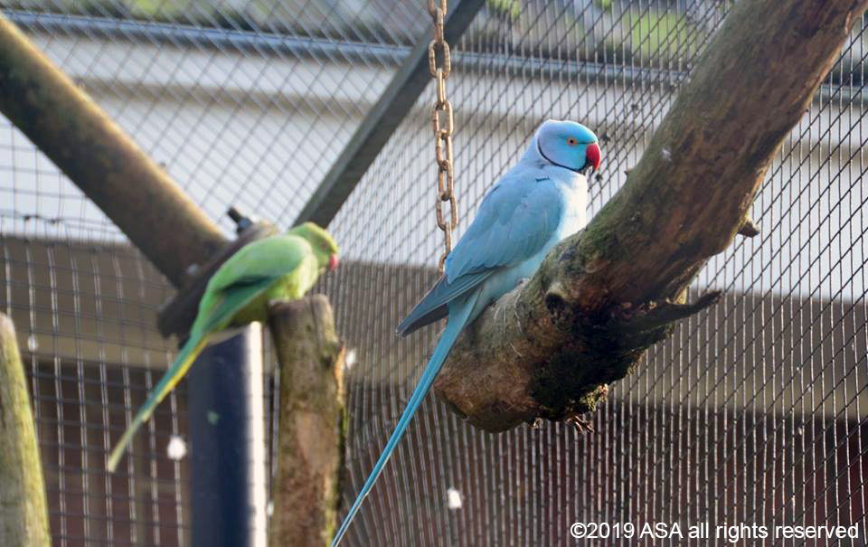 Lint is an African Grey that was also born and purchased in 1996. Adi Da Samraj spent time with Lint and gave him the name Lint because he liked to be attached to people! Lint imitates Adi Da's laugh, which is very funny. He is a great devotee and a real sweetheart, always looking for people to visit him. When he spends time with his bird friends, the ringneck parrots, he acts like a normal wild bird, showering in the rain and digging in the grounds, preparing a nest, etc. Lint is very relational and loves visits from people who are on retreat at the European Danda.