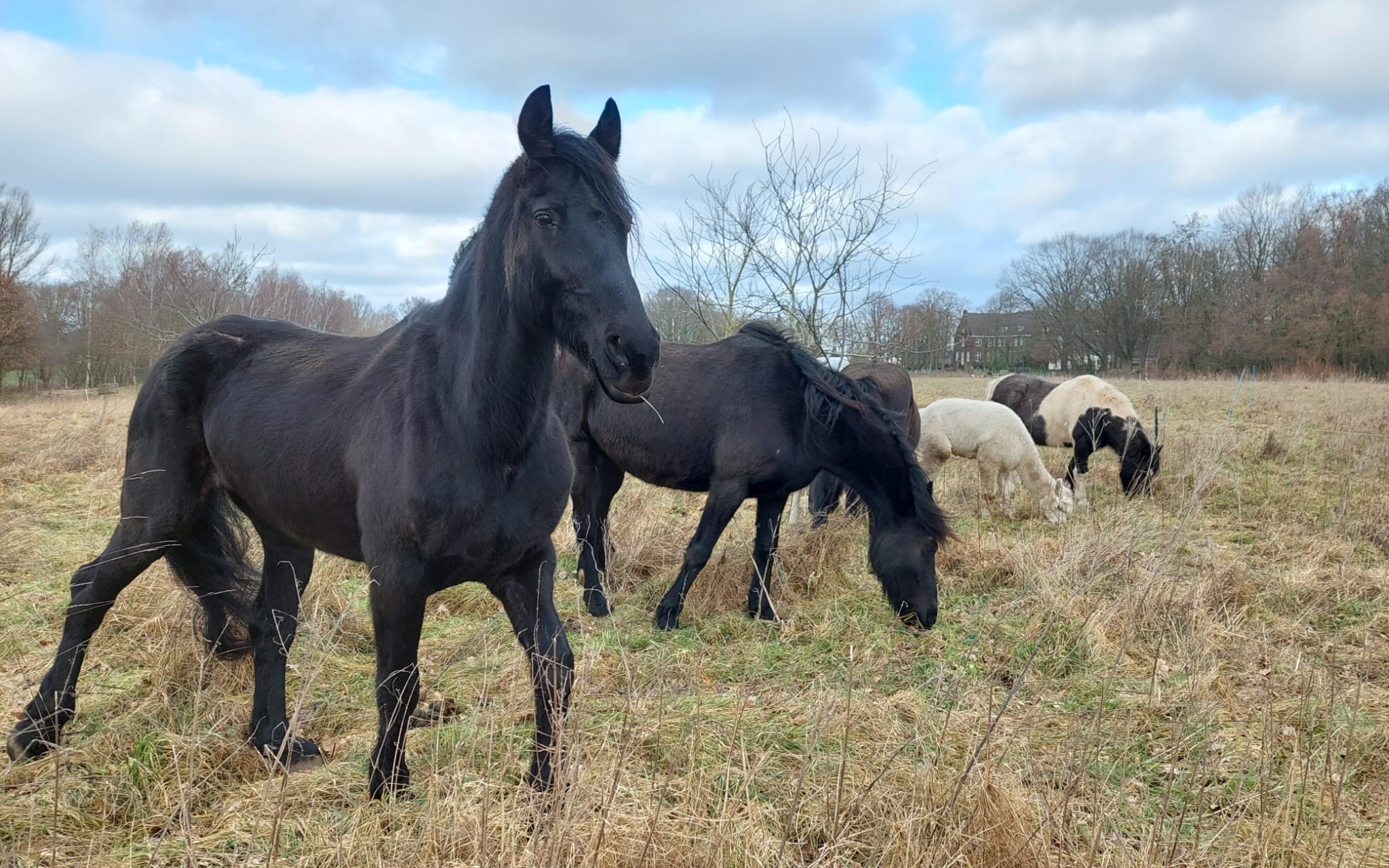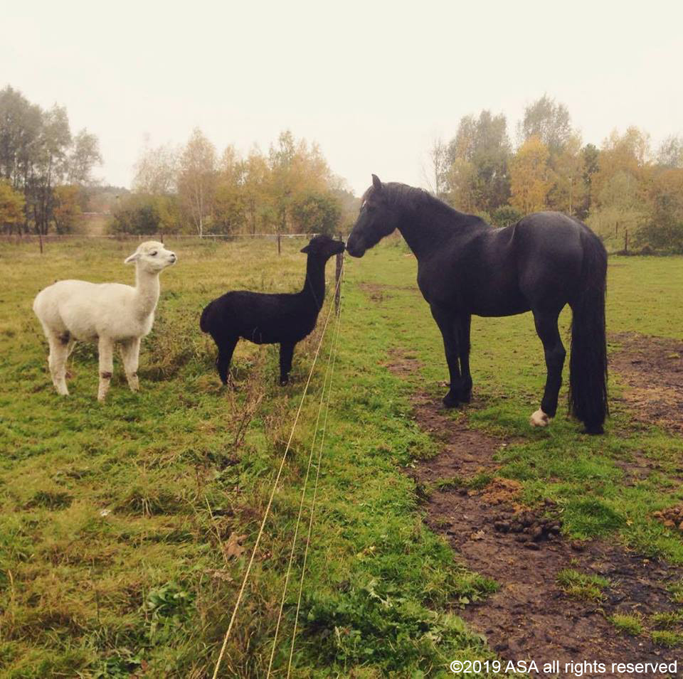 Desperado is a 10-year-old male alpaca. Since the passing of his alpaca companion Kaira, he has become more integrated with the horses and is doing very well in their close company. He is a very sweet, curious and easy going character. He likes interacting with humans as long as you stay still and allow him to approach at his own pace. He is always up for eating some treats out of your hand, but does not appreciate attempts to touch him. Desperado can be quite vocal, especially when complaining about something. Usually his complaints are directed at those pesky fences separating him from complete freedom, though he is allowed to go exploring outside the pasture every now and then. He is a bright and happy presence to be around.