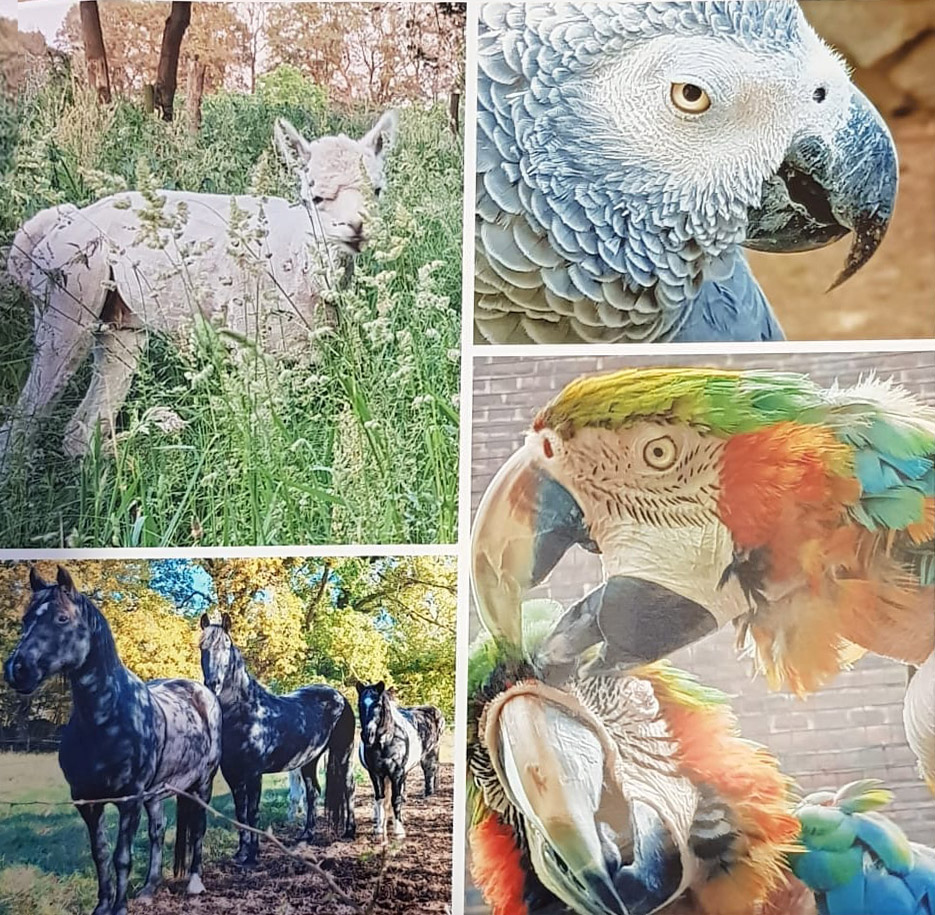 horses, alpacas, birds, chinchillas, and cats. The property is 10 hectares (24 acres) of forest and grassland that is also home to various widlife, including