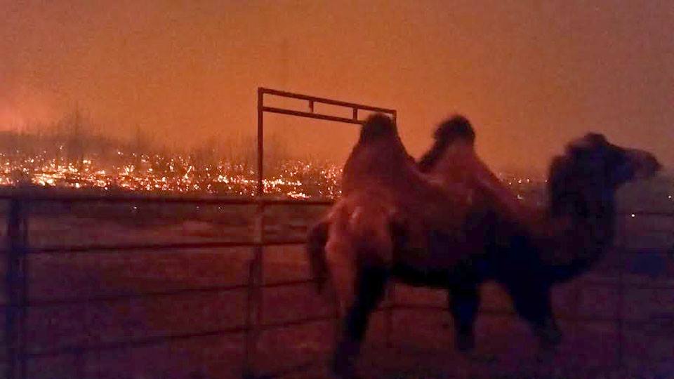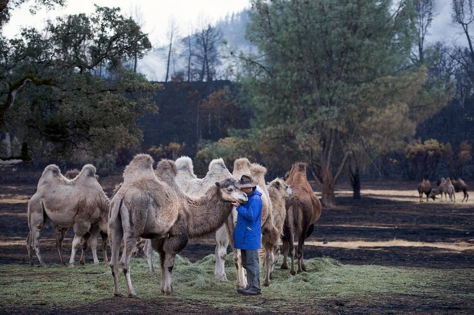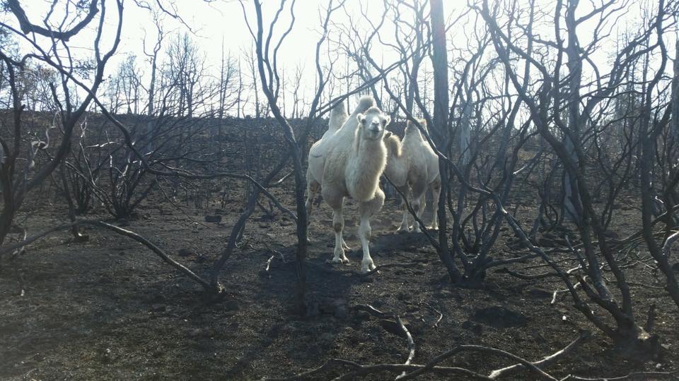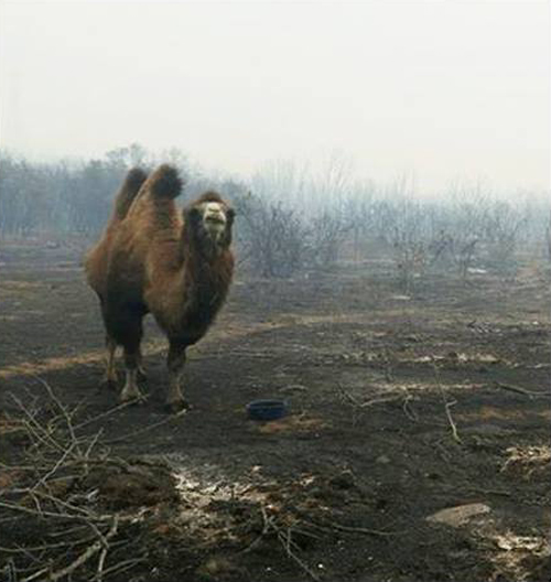 of the 18 Bactrian camels that survived the fire.