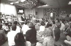 We had the most wonderful times in the tiny back room of that little Los Angeles storefront — there were always at least a handful of people there with Him, working, talking, laughing. There was always a lot of laughter — He was so full of humor! Sometimes, He would give talks, spontaneously. And then, everything would grow quiet and He would go into meditation. The room would fill up with the incredible feeling of His Love and Fullness, His Freedom, His Humor, His Peace. We would sit around Him, basking in that Feeling, wanting nothing more than to be with Him.