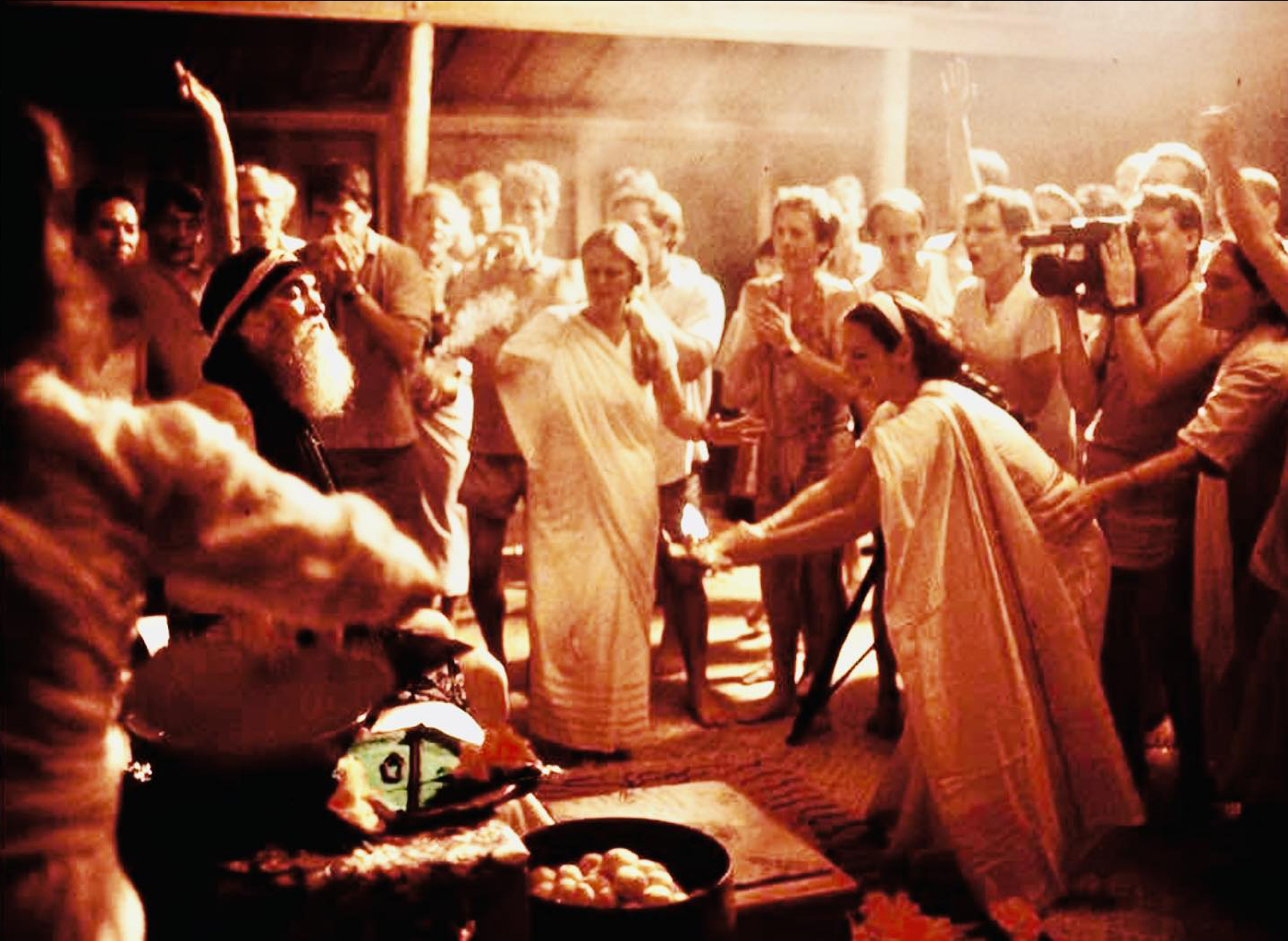 ![]() Darshan with Adi Da. Ed Rahsman is the devotee with his mouth open, just to the right of the cameraman. (Click image to enlarge) |