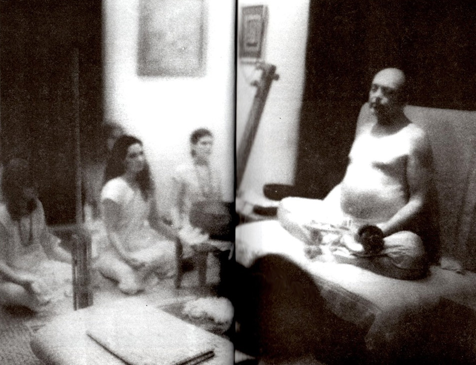 My heart opened wide and poured out love for Him. I had practiced feeling with the heart to Him, and now could engage that practice directly in His physical Company — to good effect. And that was the first miracle: I literally felt love pouring out of my heart, reaching His Heart, and feeding Him. Then the second miracle began: I felt His Love tangibly transmitted back to me, in a great and overwhelming Wave. And that caused my heart to open even wider. I soon found myself totally in love — immersed in this circle (or circuit) of love — totally animating a most direct relationship (at once, both human and spiritual) with my Master, crying out to my Beloved Guru with tears in my eyes, "Let me feed You with my devotion! May You always feel my devotion, wherever I am!" His Eyes gazed into mine. They were soft and sweet. I became suddenly aware that, beyond a doubt, I was looking at Love Personified, and that Love in Person is a Wound, a Great Sacrifice for the sake of all beings . . . and that I must become similarly heart-broken, totally vulnerable, in order to be fully liberated from the endless round of births and deaths.