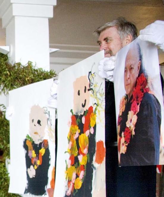Here was God Himself standing there before our eyes, Radiant and Beyond Comprehension. Later that day there was a full-Body Puja on His human bodily Form for which there are no words. Then there was the gifting of the elephant paintings, real paintings done by elephants! They were shown photos of Beloved Adi Da and they then painted these extraordinary images of Him. I can't even conceive of how the elephants do these paintings!