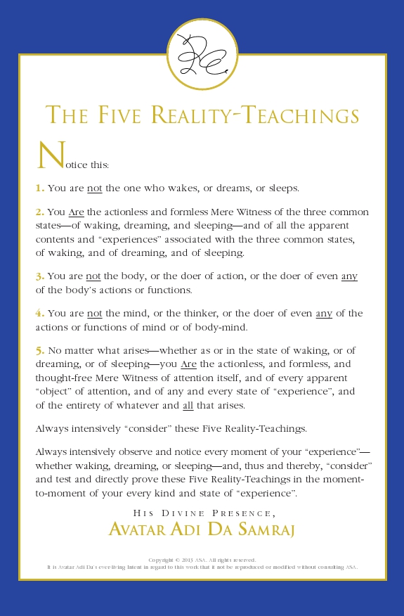 The author of all the books and booklets below is Adi Da Samraj, except where noted.