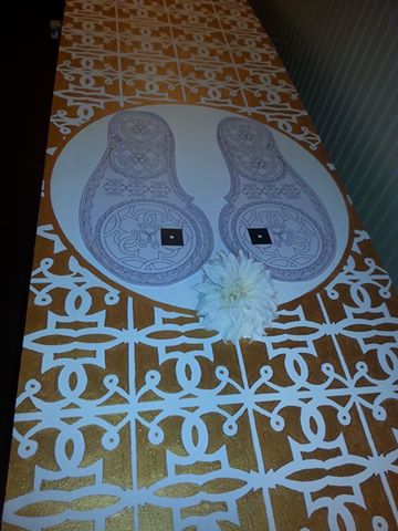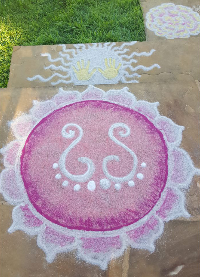 A sand rangoli made by Nara Wood to celebrate Da Purnima.
