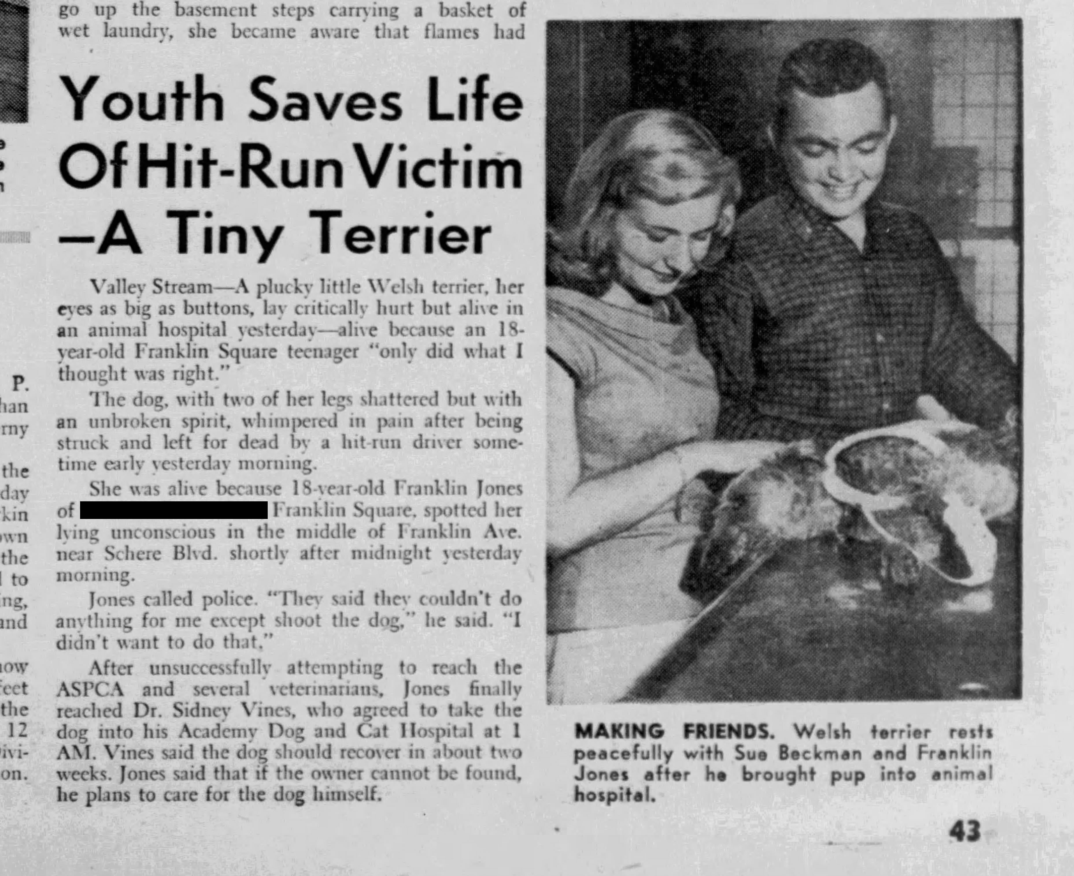 The story appeared in Newsday (Nassau edition) on June 13, 1958 (page 43).